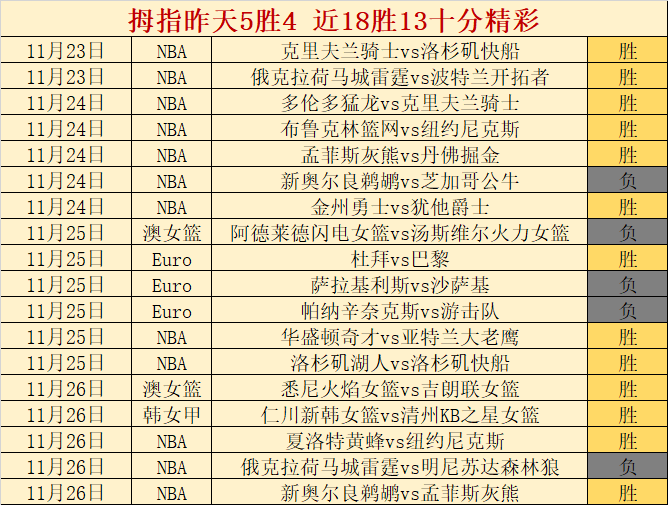昨天5胜4,近18胜13,非常精彩的胜利!