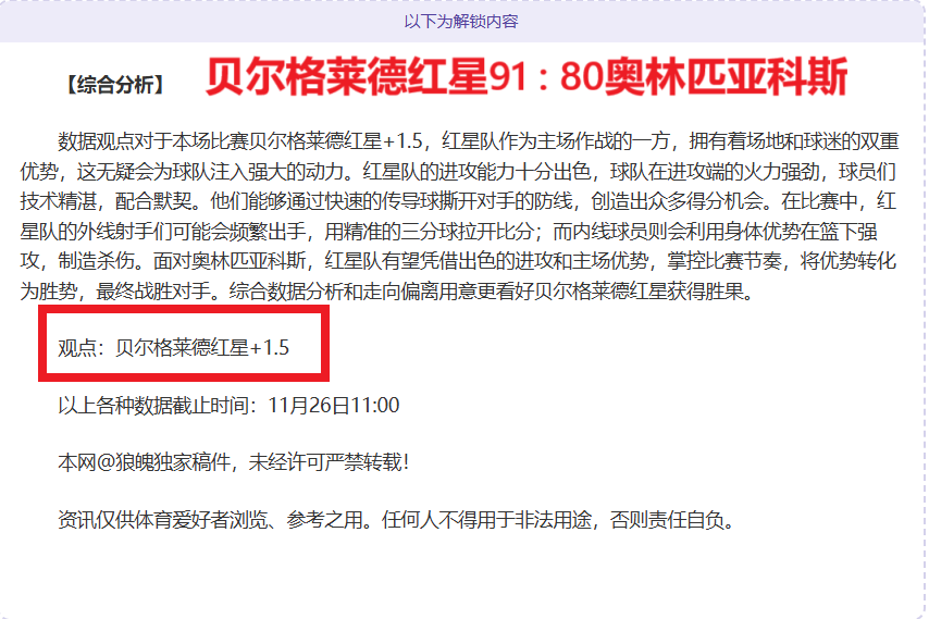 解锁内容包括:综合大数据分析+分解赛事走向+比赛建议+作者观点数据
