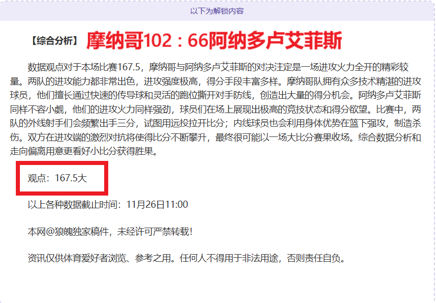 解锁内容包括:综合大数据分析+分解赛事走向+比赛建议+作者观点数据