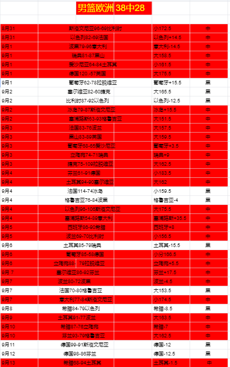 兄弟们还记得前段时间男篮欧洲杯,取得38中28不错的成绩,对于欧洲各队了解,世预赛继续加油努力。