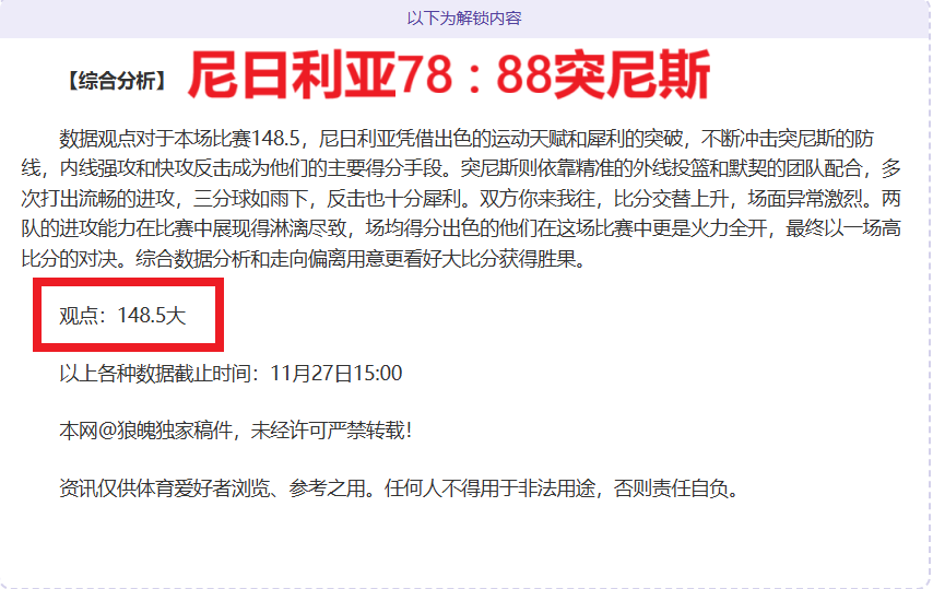解锁内容包括:综合大数据分析+分解赛事走向+比赛建议+作者观点数据