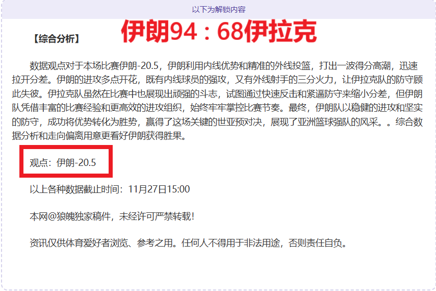 解锁内容包括:综合大数据分析+分解赛事走向+比赛建议+作者观点数据