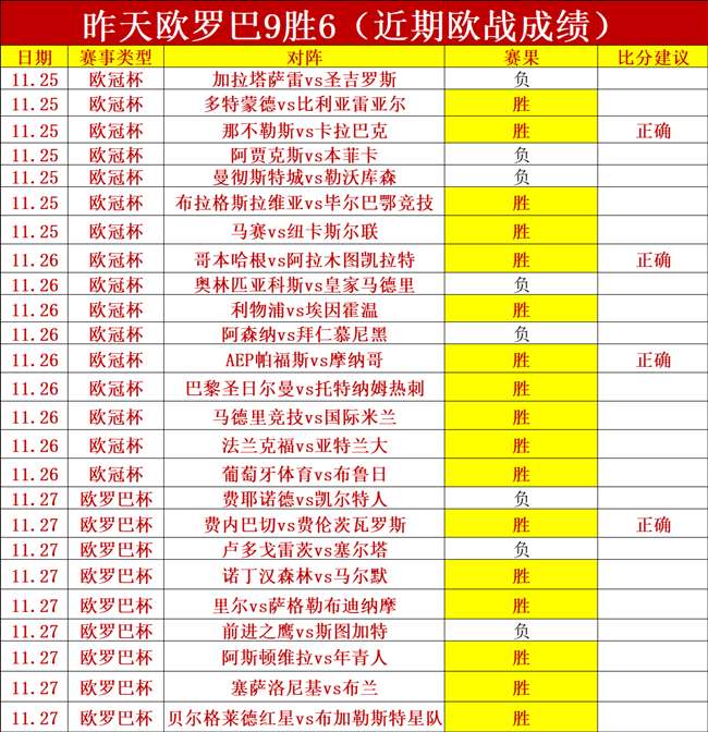 2、近几天欧战打出不俗的战绩,欧冠两天16胜11,欧罗巴9胜6。