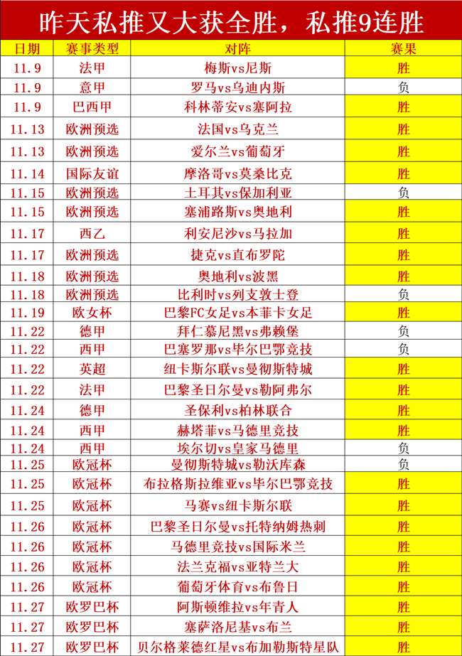 1、昨天私推3场再次大获全胜,私推狂胜不断,已经9连胜。