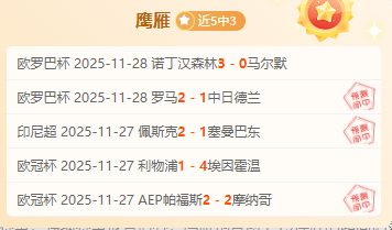 成绩回顾:昨日印尼超以及其中一场欧罗巴杯获胜,当天3胜2。感谢一直以来的支持与陪伴,今天看好不错的赛事,强项赛事很有信心,鹰雁也曾创下19连胜的超高记录。愿大家在观赛的同时,也能收获满满的喜悦与惊喜,觉得还行的不妨继续关注,一起开启精彩的足球之旅。