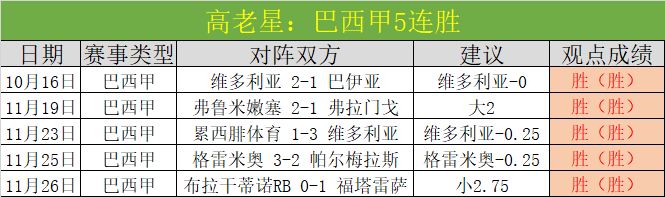 巴西甲6连胜,美洲赛事发挥出色。20号至今8天胜6天,合计33胜19负胜+14,11月截至昨天胜+20,9月胜+11,10月胜+19,连续3月双位胜增长