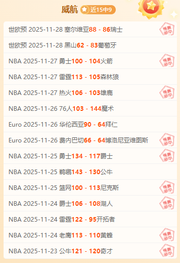 【成绩回顾】近期成绩稳定,整体15胜9。以下为大家分享一场NBA赛事,爵士vs国王,敬请期待!
