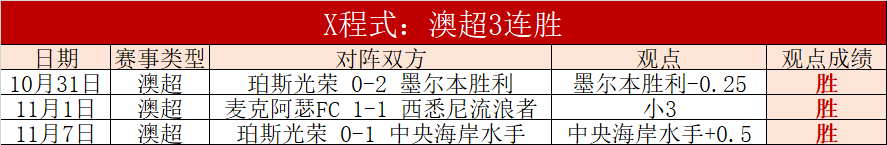 澳超目前3连胜,澳超发挥相当出色。今天周末信心启动,熟悉的热门联赛多起来,精彩发挥的信心十分高!