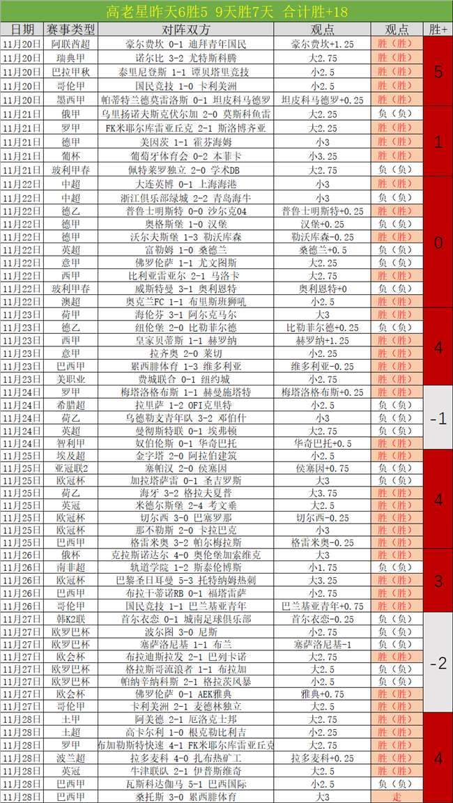 昨天6胜5,20号至今9天胜7天,合计38胜20负胜+18,11月截至昨天胜+24,9月胜+11,10月胜+19,连续3月双位胜增长