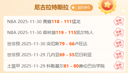 【成绩回顾】五连胜!近5战全胜,昨世预赛和NBA二连胜,信心赛事多项拿下连胜!尼古拉资深作者情报解读再有方法,信心强项情报解读连胜赛事再次出发,长期解读惊喜不断,此前作者创下4次双位数胜战绩,掌握着一手赛事资深情报,本期继续分享充满奇妙体育赛事,敬请大家持续关注!!