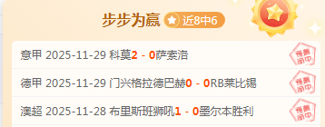 近期3连胜;五星级菜单方面,此前英冠牛津联队爆冷击败伊普斯维奇,牛津联队+1顺利抓冷成功,五星级菜单4连胜;想要获得五星级菜单的朋友可以在打赏文章下方点击打赏88球币即可获得推送。