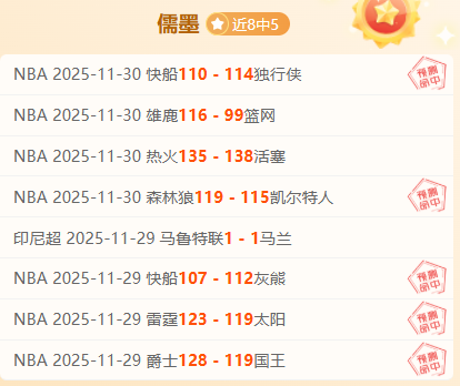 儒墨心语:做好做足功课,认真分析每一场赛事,争取更好的回馈大家的期待,加油。NBA近期是7中5,状态稳定,加油。