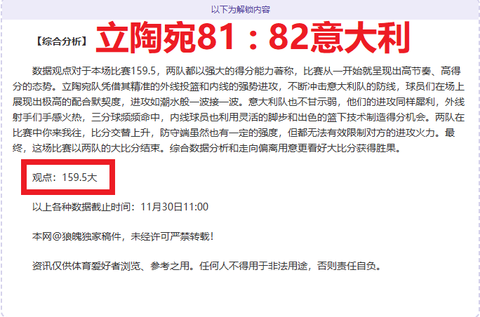 解锁内容包括:综合大数据分析+分解赛事走向+比赛建议+作者观点数据