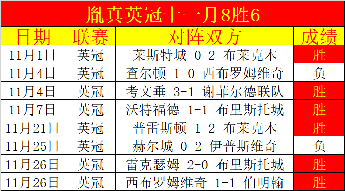 英冠在11月取得8胜6精彩发挥,英冠分析思维清晰。昨天取得胜利成绩,11月取得93胜80负合计胜+13,10月取得89胜77负合计胜+12,合计胜+25,双位保持双位胜+非常出色