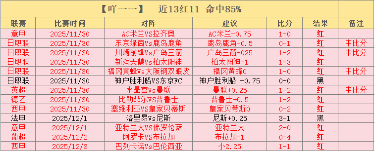 回顾:近期状态不错,新一周开启取得开门红,凌晨2场赛事顺利红,近13场命中11场,命中率85%,今日英超西甲双赛,继续精选!