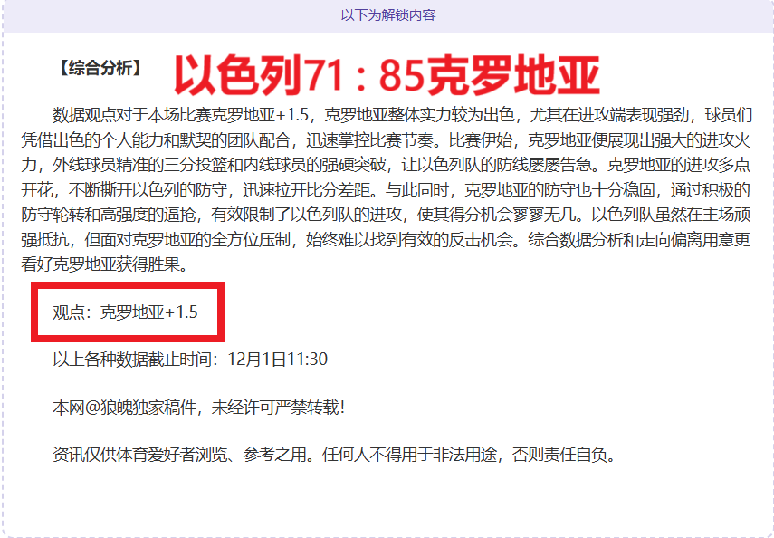 解锁内容包括:综合大数据分析+分解赛事走向+比赛建议+作者观点数据