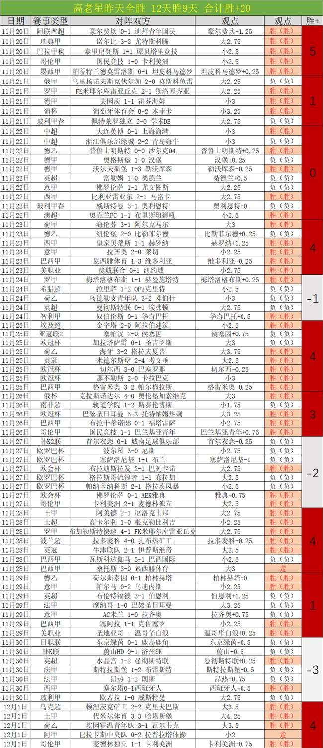 昨天全胜发挥,近12天胜9天胜+20,11月胜+22,9月胜+11,10月胜+19,连续3月双位胜增长