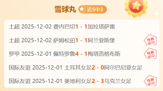 昨天3胜,女足也胜。今天赛事依旧选择强项系列,持续稳,别错过了!笔者近期前进脚步表现仍然优秀,本日赛程继续出击,争取在稳健的基础上进一步突破!