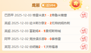 成绩回顾:昨日双胜,近期5胜4。感谢一直以来的支持与陪伴,今天看好不错的赛事,强项赛事很有信心,鹰雁也曾创下19连胜的超高记录。愿大家在观赛的同时,也能收获满满的喜悦与惊喜,觉得还行的不妨继续关注,一起开启精彩的足球之旅。