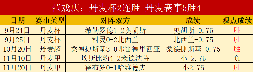 丹麦杯2连胜,丹麦赛事5胜4发挥出色。11月的30天时间精彩发挥22天,取得106场胜利73负胜+33,10月10-31日71胜48负合计胜+23,这样的胜+表现肯定是独占鳌头的