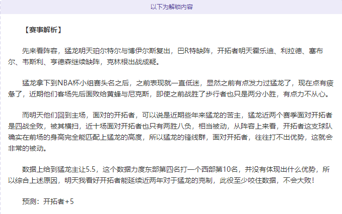 以下为解锁内容:含赛事解析+数据分析+观点参考