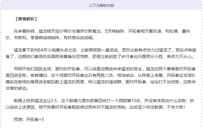 以下为解锁内容:含赛事解析+数据分析+观点参考