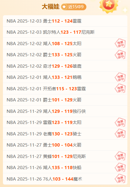 【上期回顾】专场NBA近15胜9,本期赛事全力出击赛场解读有关剧本走势!福娃给出的数据分析能够高度精准把握赛事走向并识破有关数据的剧本伎俩,时刻关注数据的变动,本期结合冷热数据解锁胜利走向为大家送上专业的分析,把握好精选场次携手走上胜利的道路。