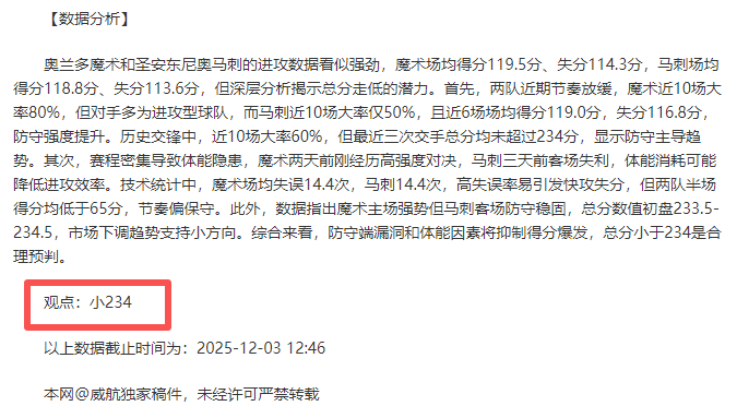 大邱飞马目前排名联赛第10位,赛季整体表现低迷,16场比赛仅获4胜12负,胜值低至25%,场均得分74.3分,失分79.7分,净负分5.4分,防守端漏洞明显。客场战绩尤为糟糕,8场客场比赛中仅2胜6负,胜值25%,显示出严重的客场依赖性,引发对球队抗压能力的质疑。近期状态同样不稳,近10场比赛4胜6负,且目前处于1连败中,士气受挫。技术统计揭示进攻效率低下,投篮命中率仅41%,三分命中率28.2%,场均篮板33.4个和助攻16.8次,均落后于昌原LG猎隼,但场均失误9.9次相对较少,显示一定控制力。半场表现中,16场比赛半场胜值50%,得分37.3分,失分38.9分,净负分1.6分,开局阶段常陷入被动。历史交锋中,大邱飞马处于绝对下风,近10次交锋仅胜1场,但近6场比赛中取得3胜3负,表现略有提升,引发疑问:球队是否找到突破口?面对强敌时,能否在客场制造惊喜?此外,近期大率50%,但防守端场均失分79.7分,若无法限制对手得分,总分可能走低,这与总分盘148.5的设定形成矛盾。整体实力差距明显,但客场作战的体能分配和战术调整,能否弥补劣势,值得观察。