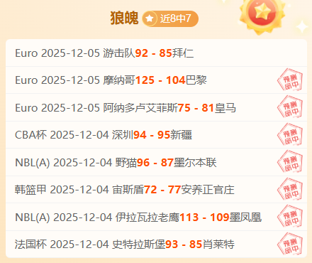 【成绩回顾】近8胜7!昨日取得7连胜记录,NBL、Euro二场全胜、韩篮甲、CBA杯取胜、新一期赛事继续关注赛事延续胜利,作为本网资深作者和篮球分析师实力有目共睹,擅长拆解数据用意,连胜佳绩历历在目,笔者将再接再厉争取得更佳战绩回馈粉丝,本场比赛将精选一场优质情报,敬请关注。