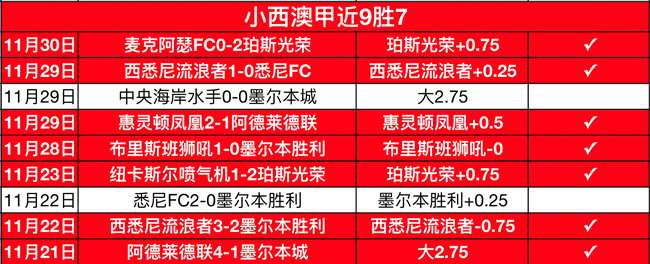 战绩回顾:昨晚结束的3场比赛是2胜1走,西汉姆联方向+拉齐奥队的方向都是完美拿下!今日带来早场澳甲的比赛,目前澳甲9胜7,状态正佳!