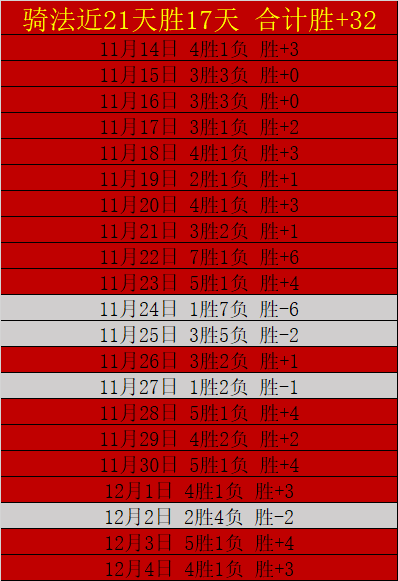 两天大胜合计11胜9,近6天胜5天胜+17,近21胜17天胜+32,现在发挥非常出色,在疯狂飙胜+