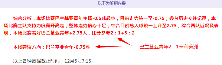 解锁内容包括:综合分析+胜负观点+比分观点
