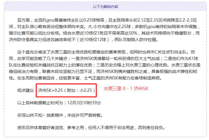 从竞技状态和赛季表现来看,身处次级联赛的水原三星反而更加稳定,攻防数据也更为均衡。济州SK虽拥有K1联赛的经验,但整个赛季表现挣扎,近期状态和攻防效率都处于明显劣势。不过,附加赛的经验和压力处理能力将是关键变数。