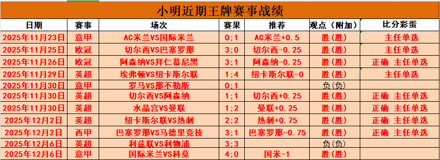 【上期回顾】昨整体9胜5,精选7胜4,柏、悉尼、国米、维拉全出,近5胜3;赞赏2胜1,曼城打出,赞赏8对7。昨王牌国米拿下,王牌11胜9,精选净增1场,周日求稳为主,加油!
