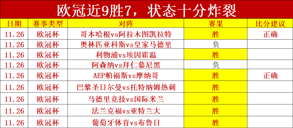1、昨天状态十分炸裂,加上私推6场仅失1,有效成绩5胜4,意甲2场也大获全胜,终于迎来了笔者的重中之重的欧战了,欧冠近9胜7,敬请期待。