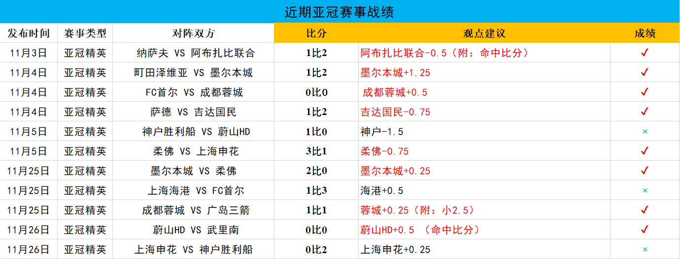 不知有话说:信心亚冠又来了,上月亚冠11中8命中率73%,以下是不知统计的表格供大家观看,今日给大家带来亚冠的重,心!