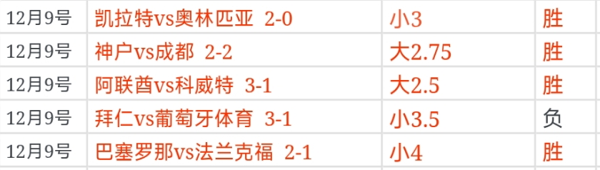 昨日依旧大丰收!早场欧青、亚冠、阿拉伯杯全部顺利打出,拜仁在送个乌龙球后‘恼羞成怒’让一追三遗憾失利,随后巴塞罗那2-1点到为止继续打出所需赛果,整体5中4,今日继续飘红!