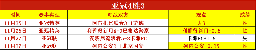 亚冠4胜3!今天赛事依旧选择强项系列,持续稳,别错过了!笔者近期前进脚步表现仍然优秀,本日赛程继续出击,争取在稳健的基础上进一步突破!