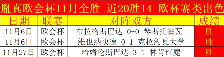 欧会杯11月全胜发挥,近20胜14,很明显欧杯赛类发挥出色。12月保持正向胜+发挥,11月胜+13,10月胜+12,月发挥非常出色