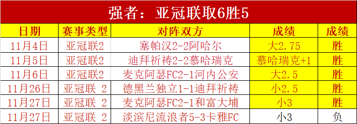 亚冠联6胜5,亚系早场一直保持精彩。近23天仅负值7天胜+16,11月胜+16,10月胜+16, 双月保持双位胜+发挥