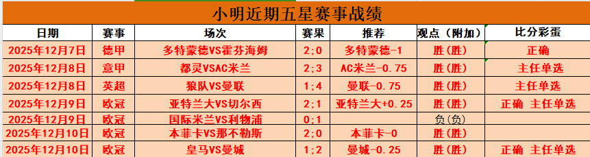 【上期回顾】全胜!全胜!全胜!昨文章5场全胜,申花、墨尔本城、曼城、本菲卡、黄潜大全出。6连胜,本周3天13胜12,五星2场也全对,五星近7胜6。这一周朋友们大丰收,今天继续一起冲!