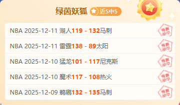 两场信心NBA再度全命中,豪取5连胜!然后整体战绩来到12中11,状态持续火热,妖狐的追踪还是持续精准。连胜势头已起,今日继续锁定目标冲击连胜!