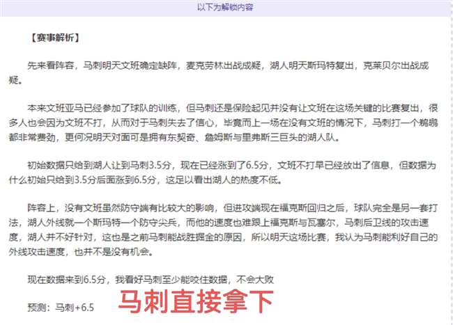 以下为解锁内容:含赛事解析+数据分析+观点参考