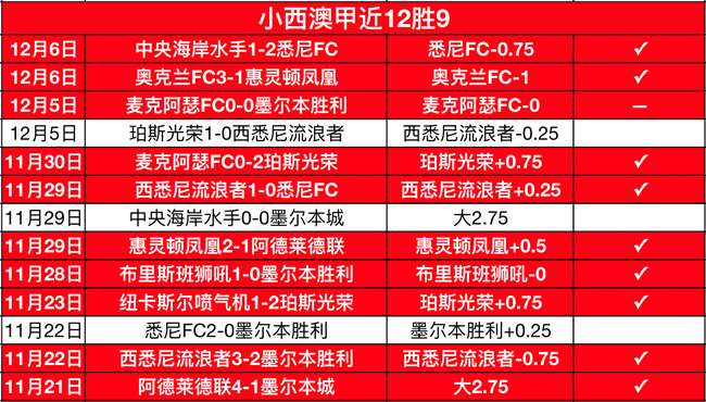 战绩回顾:今日澳甲将会全面开战!小西目前的澳甲比赛还是相当有把握的,澳甲近14场胜率是达到了71%!今日一场精选继续!
