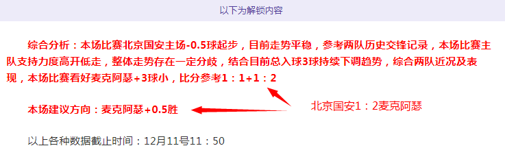 解锁内容包括:综合分析+胜负观点+比分观点