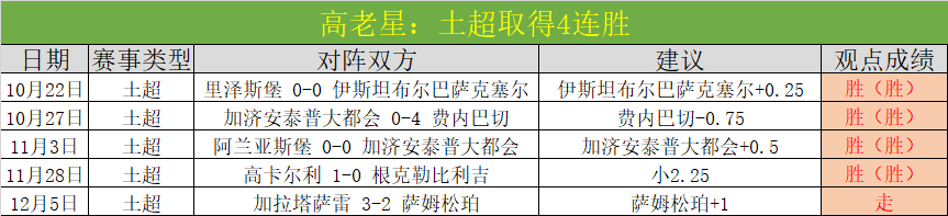 土超4连胜,这场土超分析同样信心充足。昨天取得平稳精彩,连续精彩5天胜+8,22天胜17天胜+26,9月胜+11,10月胜+19,11月胜+22,连续3月双位胜增长