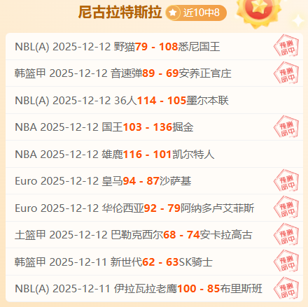 【成绩回顾】近10胜8!昨日韩篮甲、NBL、土篮甲、Euro再拿下连胜,信心赛事多项拿下连胜!尼古拉资深作者情报解读再有方法,信心强项情报解读连胜赛事再次出发,长期解读惊喜不断,此前作者创下4次双位数胜战绩,掌握着一手赛事资深情报,本期继续分享充满奇妙体育赛事,敬请大家持续关注!!
