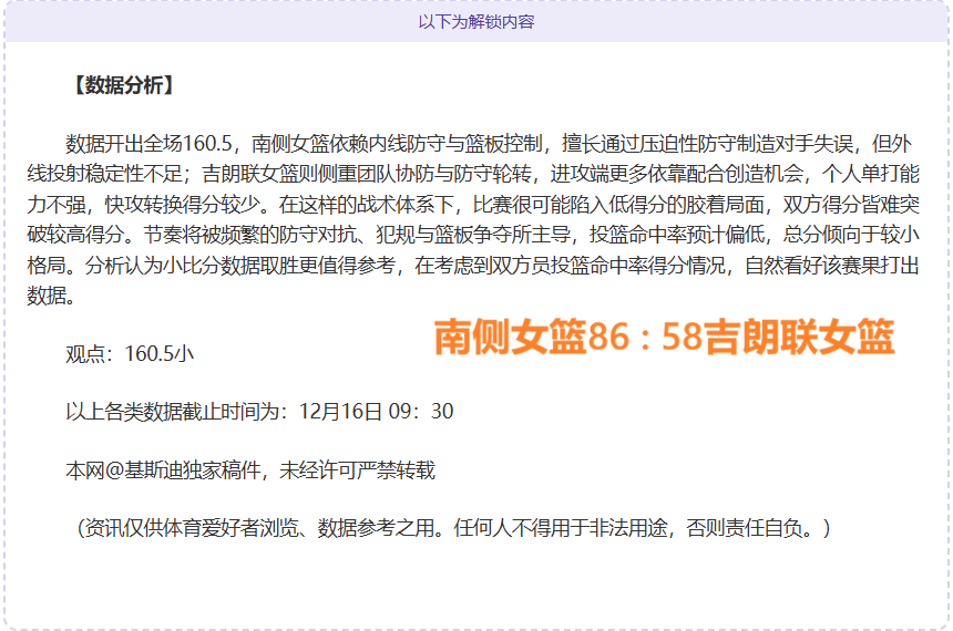 【成绩回顾】昨2胜,韩篮甲、澳女篮获胜,精选比赛拆解本期再创连胜新高度,篮球方向连胜呈现非同凡响,拆解精准比赛继续收获连胜,篮球板块拆解数据勇往直前,资深篮球爱好者,用独立方式拆解赛事再为大家奉上。以下再为大家分享一场精彩赛事,敬请期待!