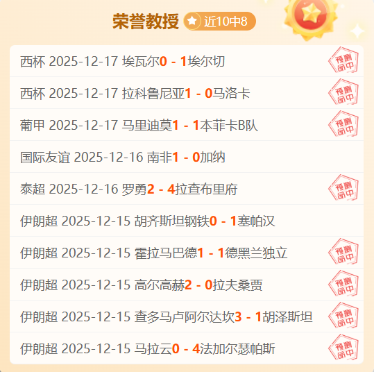 最近更新:2025-12-17 13:45 伊朗超近9胜率89%近10中8