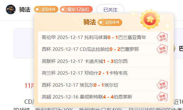最近更新:2025-12-17 14:36 近6中4最长12连红